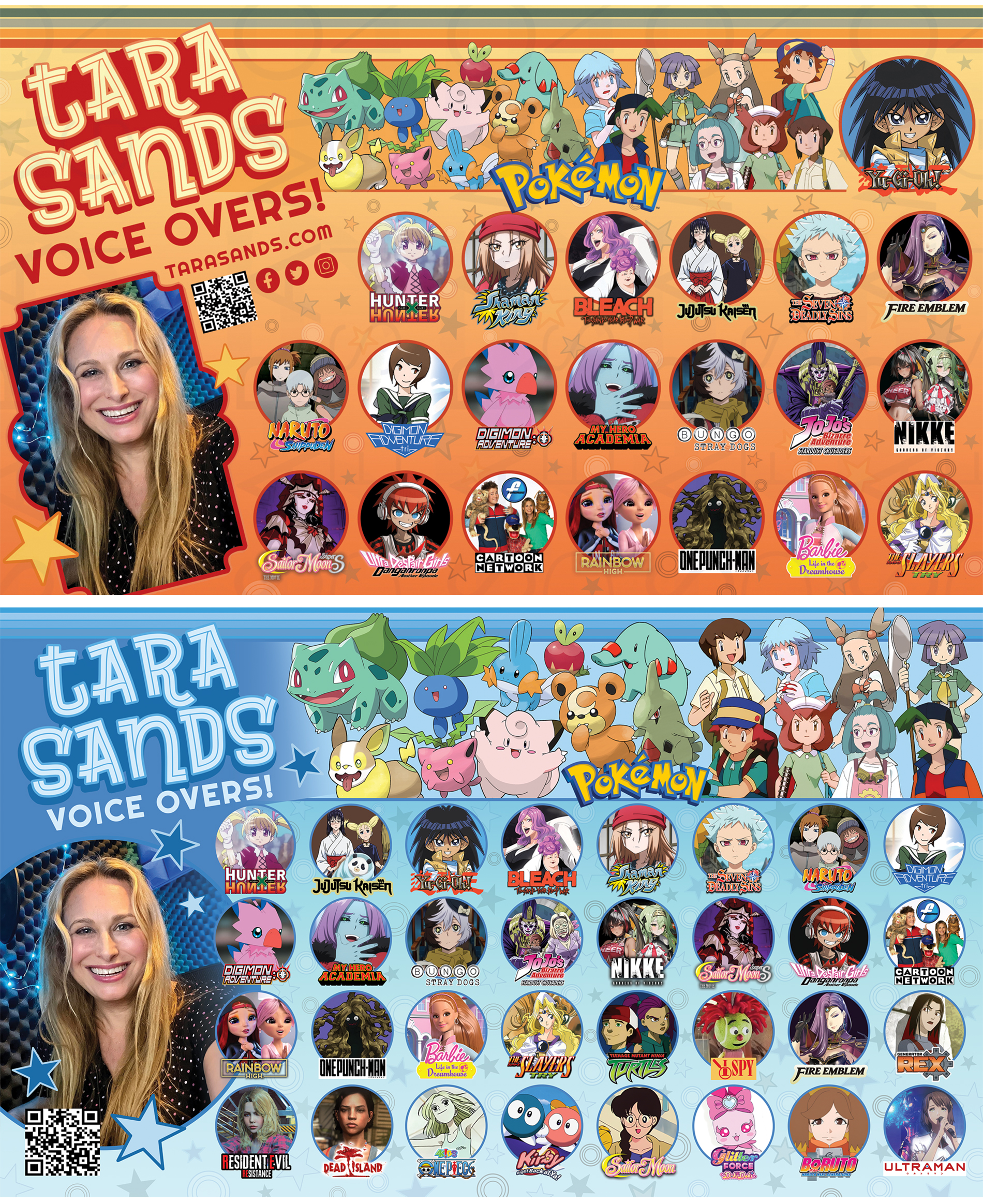 The following are print and web content that I have designed for a variety of voice actors. This is organized from newest to oldest unless it’s been updated over a span of years.